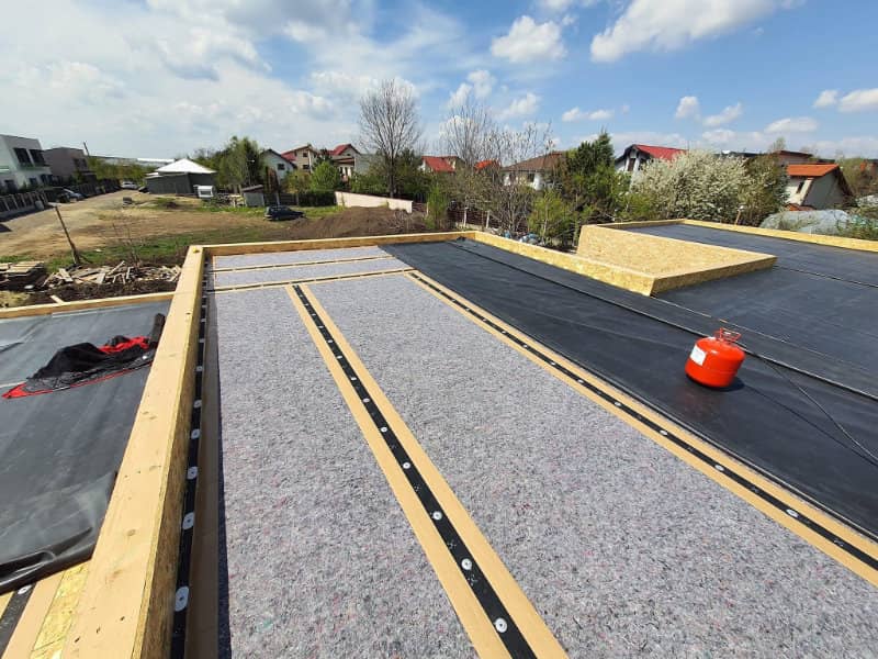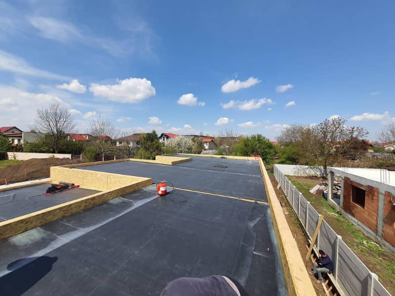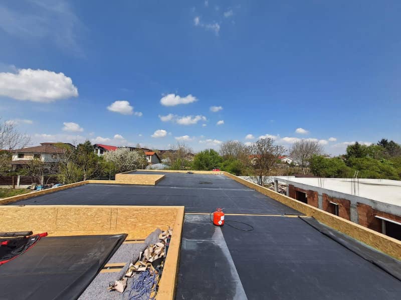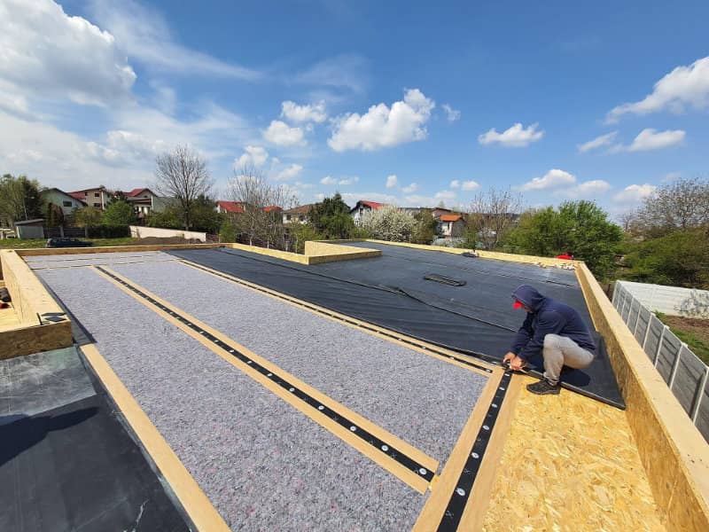EPDM este un material flexibil, durabil si rezistent la UV, potrivit in special pentru case pe structura usoara, unde alte solutii de hidroizolatie pot deveni rigide sau sensibile la miscarile naturale ale cladirii.